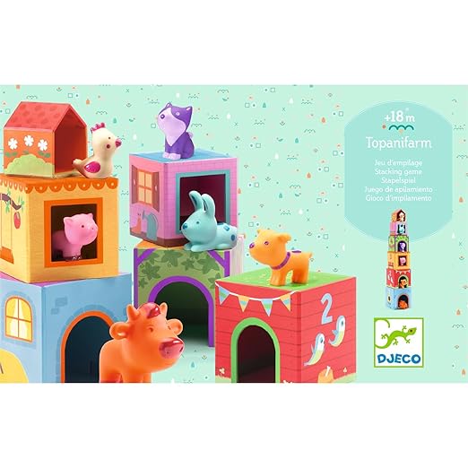 - BUILD WHIMSICAL FARM SCENES: The DJECO Blocks & Towers Topanifarm set lets children create charming farmyard scenes with a variety of colorful wooden blocks and illustrated animal pieces. A fun and creative way to build, stack, and imagine!