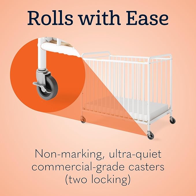 - Space-Saving Metal Crib – Compact design is ideal for making the most of your space in childcare settings, hotels, or vacation rentals