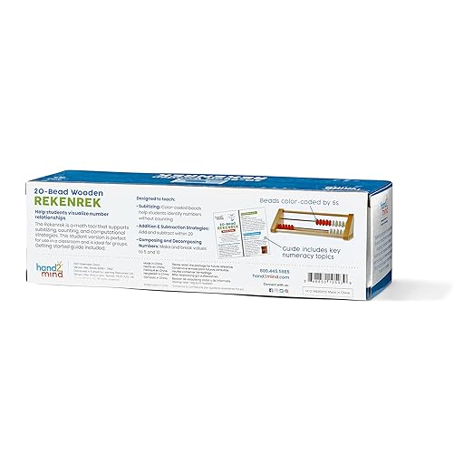 hand2mind 20 Bead Wooden Rekenrek, Abacus for Kids Math, Math Manipulatives Kindergarten, Counting Rack for Kids, Counters for Kids Math, Educational Toys for Elementary Kids (Set of 1)