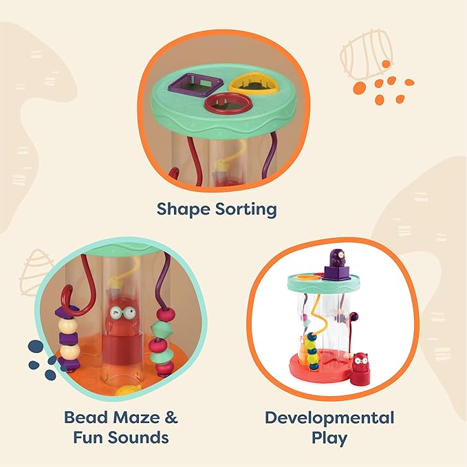 - Educational Fun: This developmental shape sorter has it all – funky sounds, vivid colors, and textured beads. A sensory toy that’s perfect for curious minds!