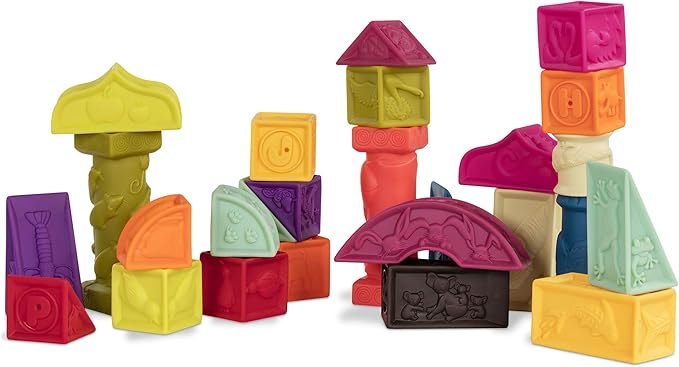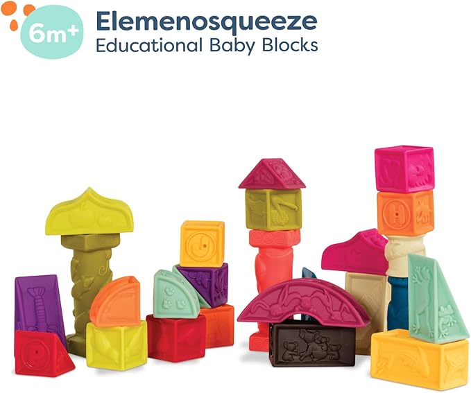 B. toys- B. baby- Elemenosqueeze- Baby Blocks- 26 Soft Sort & Stack Blocks With Alphabet – Architectural Building Blocks – Shapes, Letters & Animals – 6 Months +