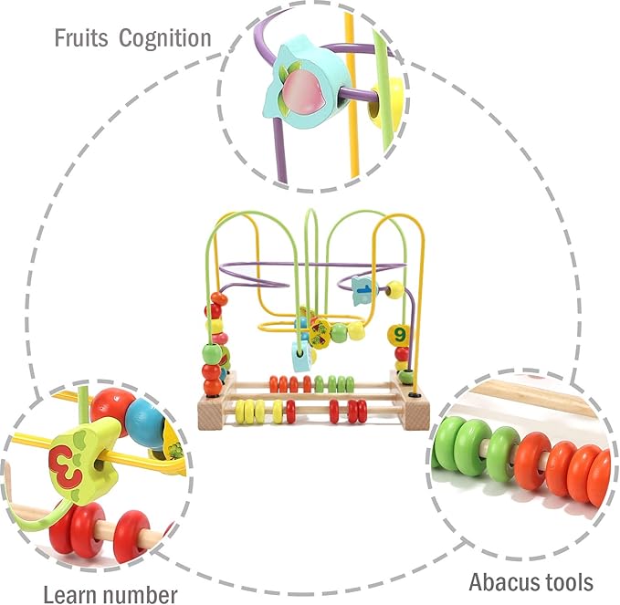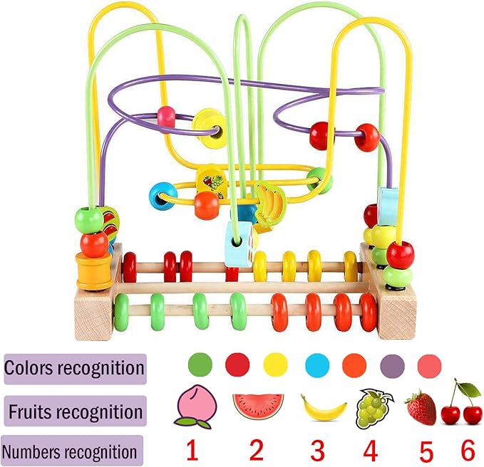 - Fun To Play: Developing cognitive capacities of babies and toddlers is a vital, yet difficult job, but with the fruit bead maze on fast forward. Sliding shapes, spinning beads to count, help children to Learn Math and Recognize Fruits
