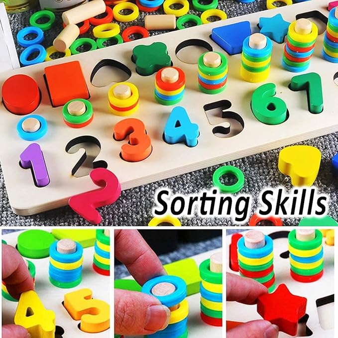 - 🌈【AWESOME GIFTS IDEA】Learning toys create fun time in sorting shapes, learning numbers. Wooden Montessori toys are great gift and educational toys for kids ages 3 4 5 years boys and girls at birthday party, Christmas, gifts and other holidays.