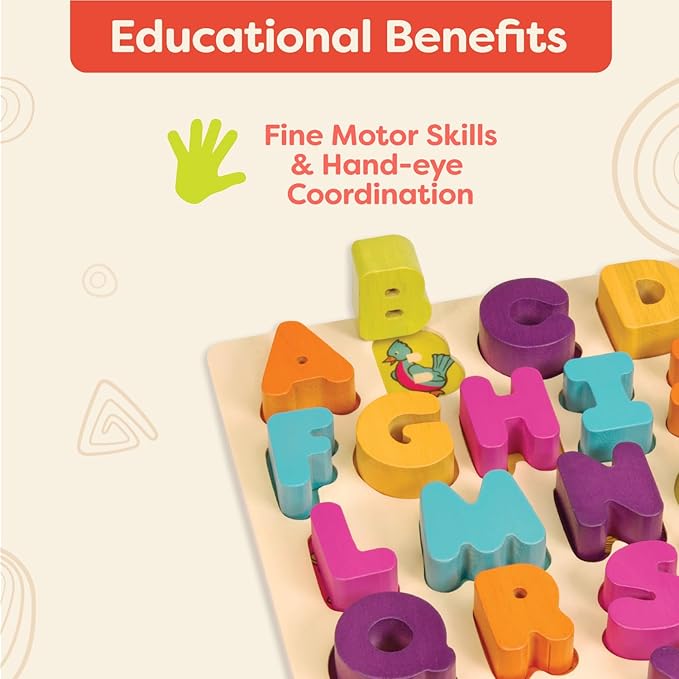 B. toys- Alpha B. Tical– Wooden Alphabet Puzzle – 26 Letter Pieces – Chunky Wooden Puzzle – Educational Toys for Toddlers, Kids – 18 Months +