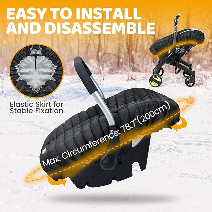 Orzbow Winter Carseat Cover for Baby, Baby Car Seat Cover for Boys & Girls, Warm Infant Car Seat Covers for Cold Weather, Rain & Snow Repellent, Waterproof, Universal Fit, Newborn Essentials, Black