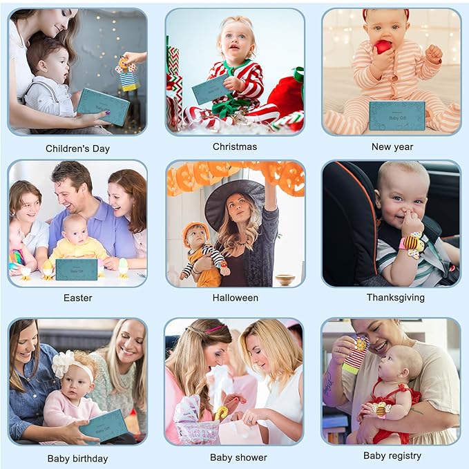 - PERFECT BABY GIFTS -- Give these Soft Baby Rattles Toys as the perfect infant toy gift.Suitable for Baby showers/Baby sprinkle/Sip & See gift/Newborn baby gift/Birthday gift/Registry gift/Easter/Halloween/Thanksgiving/Christmas/Holiday gift/Christening gift/'Just because'gift.