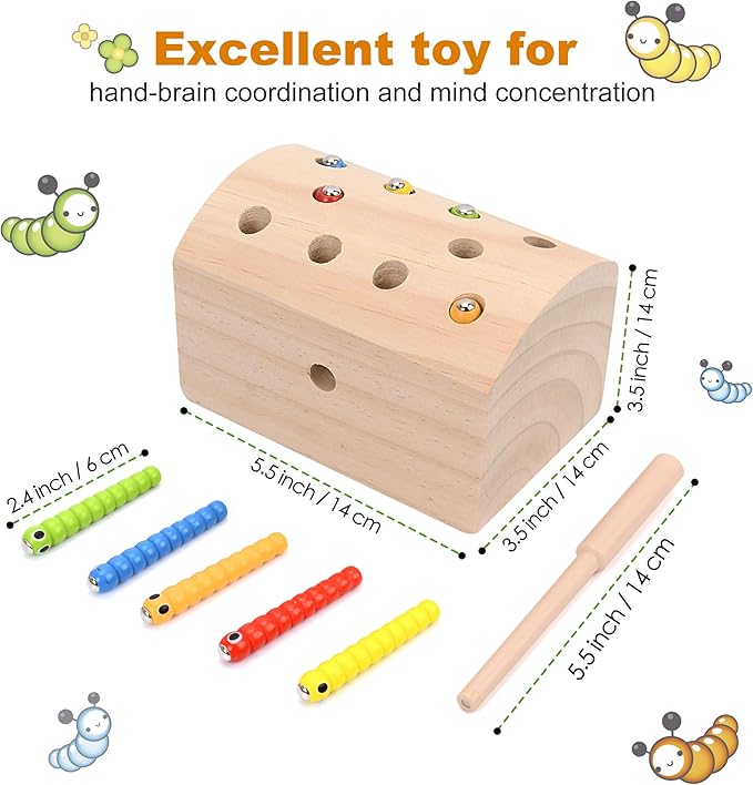 - Peck on Playtime– Be a preschool early bird and catch the educational worm! Your woody woodpecker toy tests your child’s focus to place and grab the wacky worms with a magic magnetic pole.