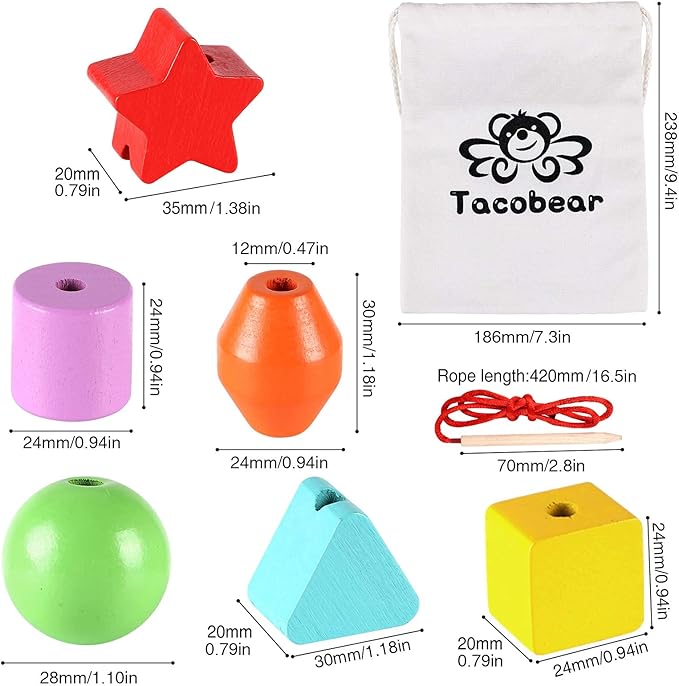 - 【NATURAL WOOD TOYS FOR KIDS】---Lacing toy is designed for children to recognize shapes and colors; Made of high quality natural wood; Provide a non-toxic and safe lacing beads game with smooth edges and surfaces for kids; Conforms to US Toy Standard, AS and CPSIA safety test approved