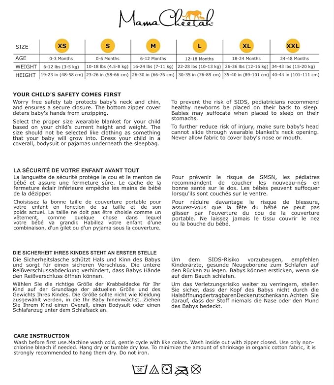 - 【EASES SWADDLING TRANSITION】— Mama Cheetah's wearable sleep blankets facilitate a smooth transition away from swaddling, fostering healthy sleep routines crucial for baby's progress & well-being. With ample space to accommodate sleepwear & unrestricted leg movement, our sleep sack toddler, baby blankets promote proper hip development & a delightful bedtime for your little one. Machine washable & fade-resistant, this baby sleeping sack is a vital addition to your newborn baby essentials.