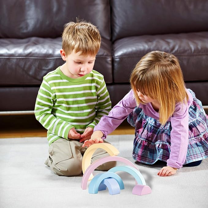 - Inspires Creativity: The rainbow stacking block is a multifunctional and open toy. Help children exercise fine motor skills, color recognition, hand-eye coordination and early learning. Let your kids imagination lead