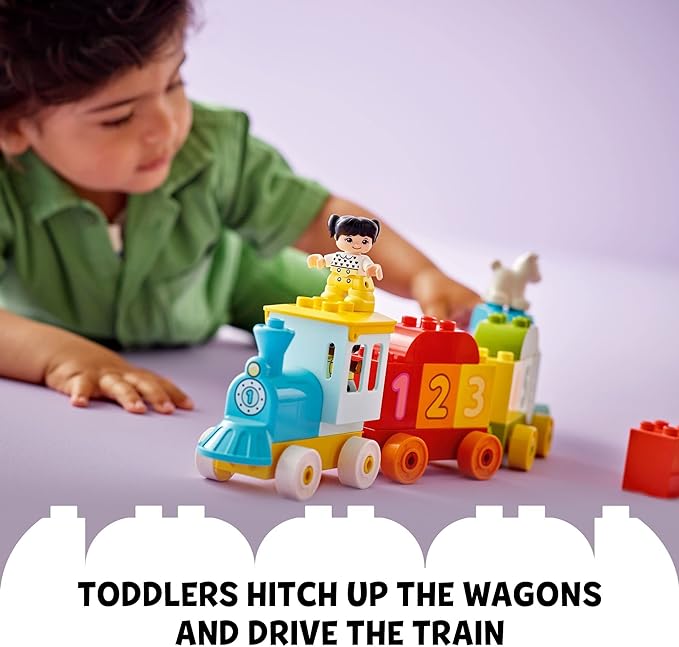 - With its cute characters and easy-to-handle DUPLO bricks, this train toy for learning numbers is an ideal gift for kids 1 .5 plus years old