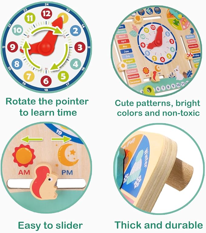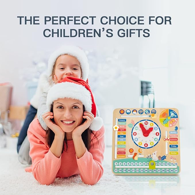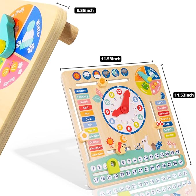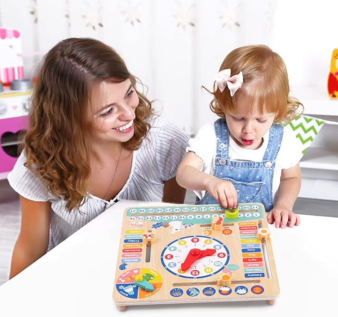 TOOKYLAND Montessori Educational Wooden Learning Toys Kids Daily Calendar My Calendar Clock Wooden Toys Gifts for Toddler Kids Age 3+