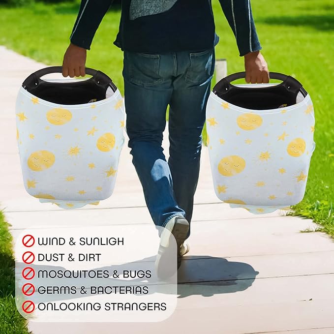 Stretchy Baby Car Seat Covers for Newborns, Infant Car Canopy Extra Soft and Stretchy Nursing Covers for Moms (Shinning Night)