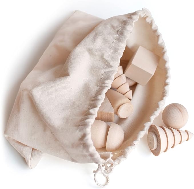 - π INCLUDED: 20 unfinished wood figurines 1.6 in; a linen bag for storage; Can be used for shape sorting and DIY; Combines with other our sorters with balls and cups, Waldorf peg dolls, wooden cubes, peg sorters, wooden eggs, memory games, etc
