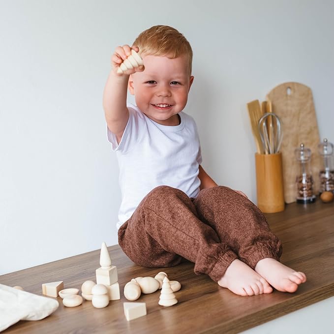 Ulanik Wonderful Bag Toddler Montessori Toys for 3 Year Old + Unfinished Wooden Figurines for Shape Sorting & DIY Painting Pyrography Decoupage Crafts β 20 pcs
