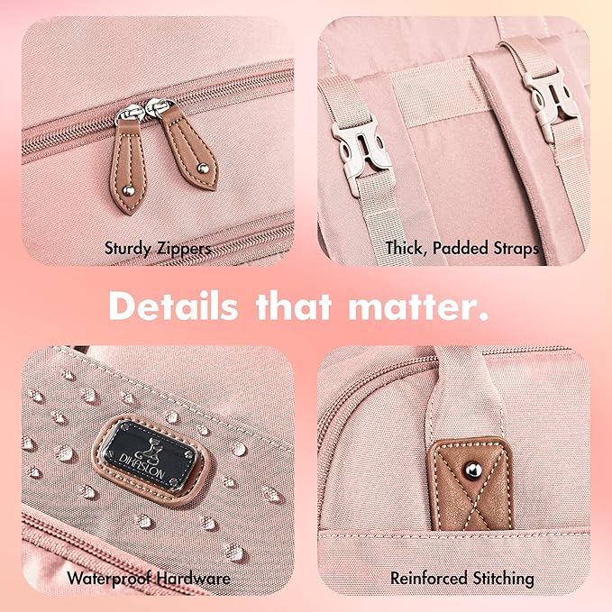 - Durability to last: Our maternity backpack diaper bag is crafted from lightweight and waterproof polyester fabric. Includes spill-resistant and easy-to-clean lining. You don't need to fear spilled milk or water. Non-fraying stitching, easy-tote top handle, back ergonomic design and thick padded cushioned shoulder straps will release stress and bring comfort while carrying.