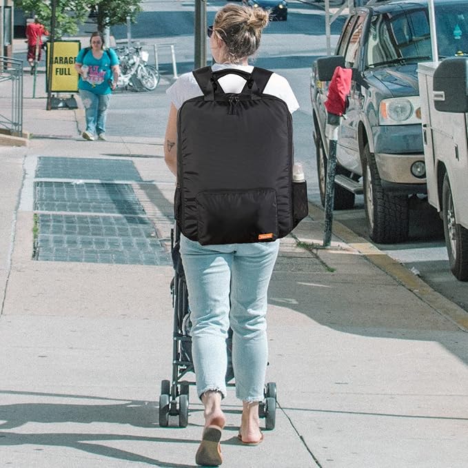 - 【Durable & Water-Resistant】 Made of durable & water-resistant nylon material to protect your baby stroller from the wear and able to isolate dirt. Metal double zipper makes the backpack open more smoothly and durable.