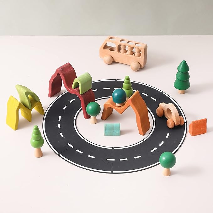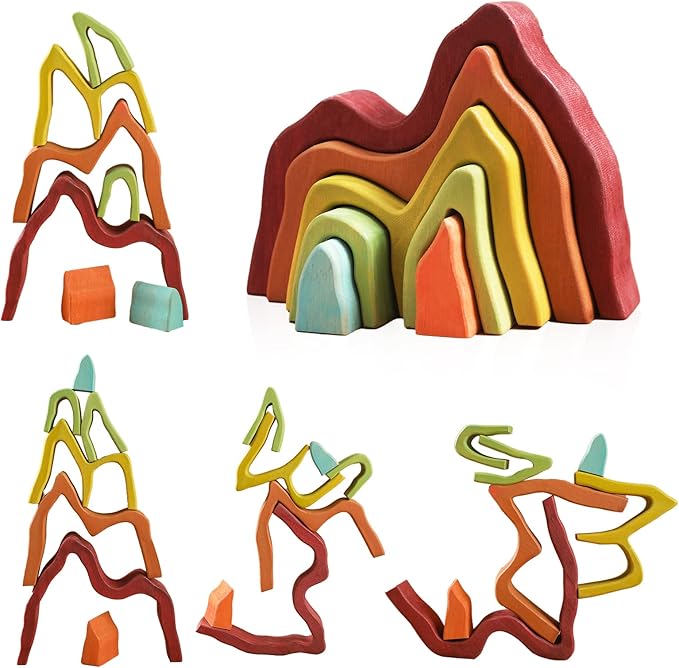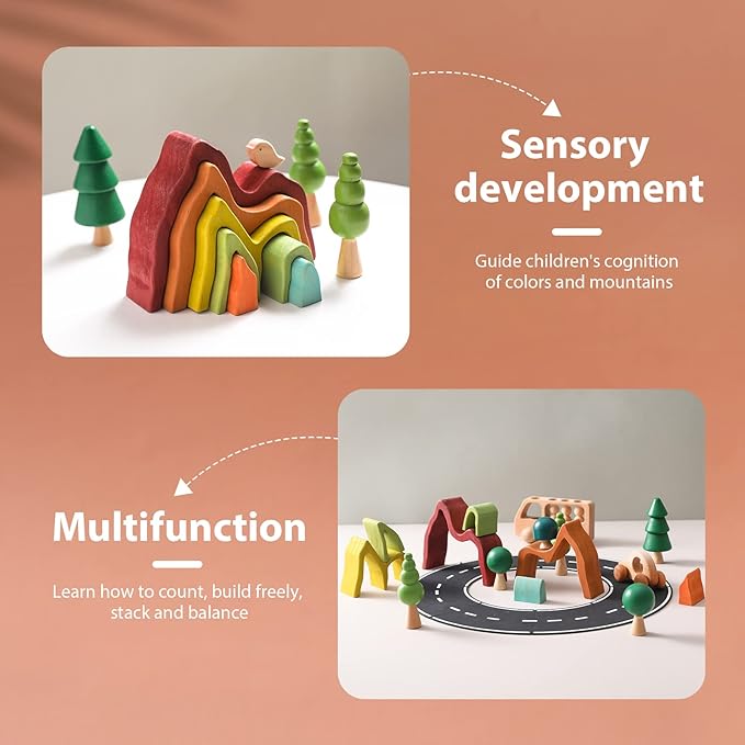 - 🌋【Inspires Creativity】: Rainbow stacking toy will also improve motor skills and hand-eye coordination while stacking and creating their objects out of these wooden blocks, whether alone or with friends.Please browse the product pictures for inspiration and let your children use their imagination.