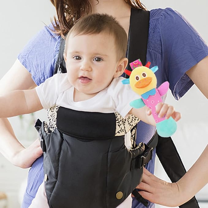 - BABY PARTNER -- Baby Rattles set was suitable for 0 month up babies boys or girls.The toys always keeps in hand, baby will not lose them or throw them on the ground. Best toys for babies when they're in stroller/infant Car Seat/mamaroo/bed/baby chair/Baby Carrier alone.