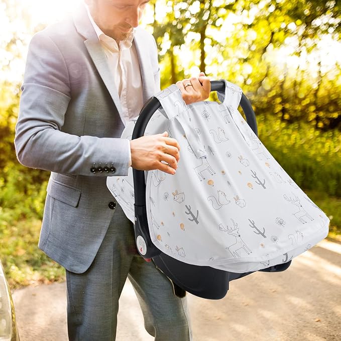 Baby Car Seat Cover, Soft Sun Shade Cover, Breathable Comfortable Privacy Carseat Canopy Protect for Newborn Infant Boys Girls (Animals)