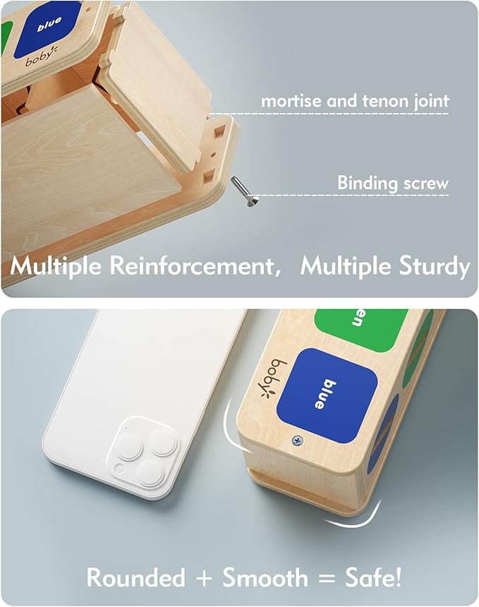 - ALL of Boby's toys are made of high-quality wood as well as Montessori School Products, and entirely with non-toxic water-based paint. All parts touched are rounded and polished. The sturdy box is fixed with Mortise-tenon joint and Binding Screws for longtime fun and play. It will meet or exceed Toy Safety Testing Standards!