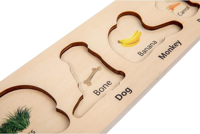 - 🐕【Interactive Learning Adventure】: This puzzle provides an interactive learning adventure for young minds. Each puzzle piece can be lifted to reveal the corresponding food item hidden inside. Children will be thrilled to discover that the cow's favorite food is grass, the dog loves chewing on bones, the monkey enjoys bananas, the rabbit munches on carrots, and the honeybee buzzes around flowers.