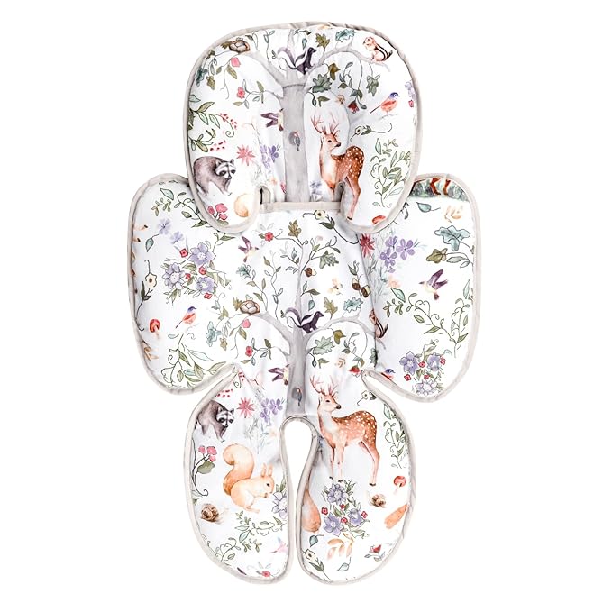 2 in 1 Infant Car Seat Insert, Car Seat Head Support Baby Girls Boys, Soft Newborn Carseat Insert Cushion, Perfect for Carseats, Strollers, Swings (Gray Animals)