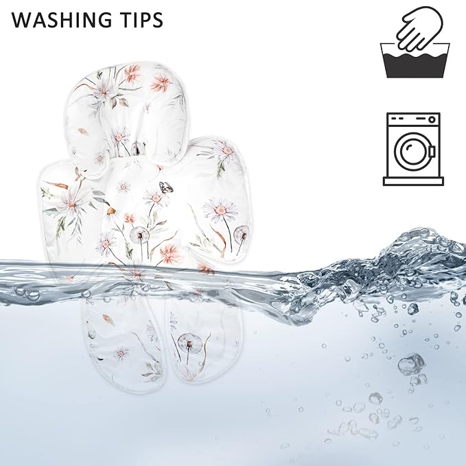 2 in 1 Infant Car Seat Insert, Car Seat Head Support Baby Girls Boys, Soft Newborn Carseat Insert Cushion, Perfect for Carseats, Strollers, Swings (White Flower)