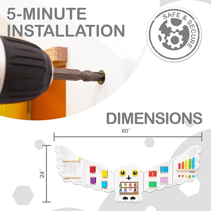 Monläurd® Owl Montessori Busy Board,Sensory Board,Educational Toys,Activity Cube,Wall Toys,Daycare Furniture,Playroom Furniture,Interactive Toys,Wooden Toys,Learning Toys,Boys and Girls 6 M+