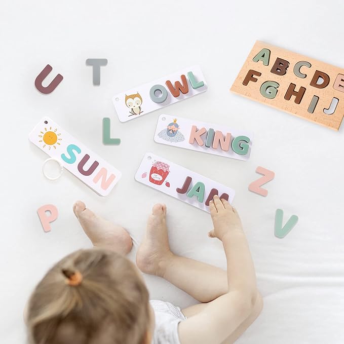 - ❤Easy to Storage:The wooden baby toys can pack away nicely when done,you’ll never have to worry about a cluttered room or missing items anymore.You can also bring silicone abc puzzles on journey or picnic to bring more fun to the children,helping to strengthen the parent-child bond.The letter puzzle also a good travel toy.