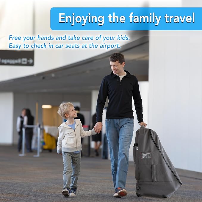 - Car Seat Travel Bag for Airplanes is available in a neutral grey color and is suitable for both men and women. This versatile product is designed for family travel and can be used as a backpack, wearable, carry-on, or ground rolling travel bag, providing a convenient solution for transporting bulky car seats. This car seat travel bag provides comprehensive protection for your car seat, safeguarding it from dust, rain, and wear and tear during travel. It also makes an excellent holiday gift
