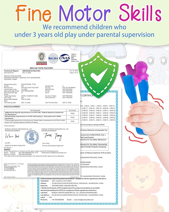 - LEARNING THROUGH PLAY: While sorting the animals toy, children need to sit and balance core muscles to move hands or use tweezers freely and figure out which color fits which bowl. This kind of activity will help your toddlers to control their body movements which are in coordination with the sorting activity also early skills for writing! The learning toy is perfect for your toddlers to learn shape and geometry, build color recognition and exercise kids’ space conception.