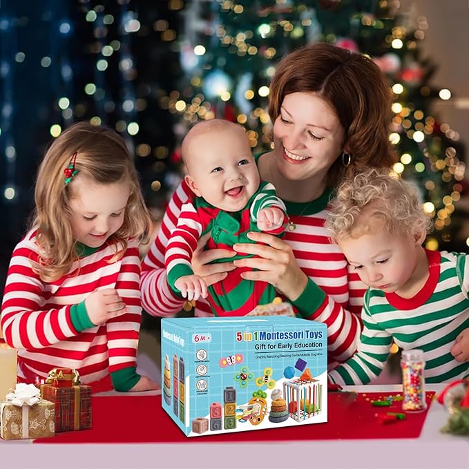 5 in 1 Montessori Baby Toy Set for Toddler Aged 6+ Month - Fine Motor Skill Learning Toys for Baby Grasp & Hand-Eye Coordination. Early STEM Gift Toy for Boys Girls 1 2 3 Years Old