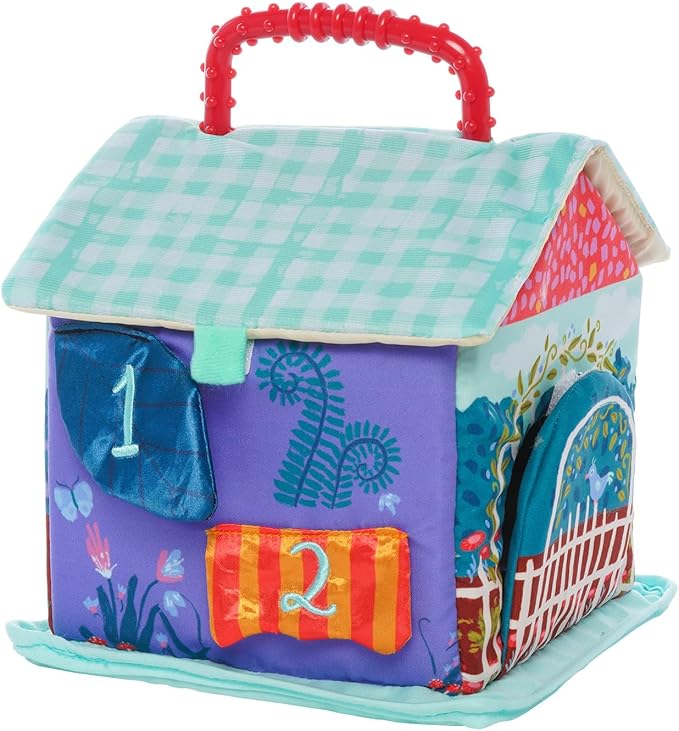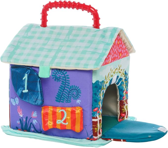 - TACTILE AUDITORY SENSORY TOY: The plush animals with carrier multi color sensory toy is a tactile wonder for curious hands as little ones engage in the variety of fabrics and shapes. The cottage contains soft lightly weighted polyester bunnies that rattle in colors of white, beige and purple, accented with embroidered eyes, noses and mouths.