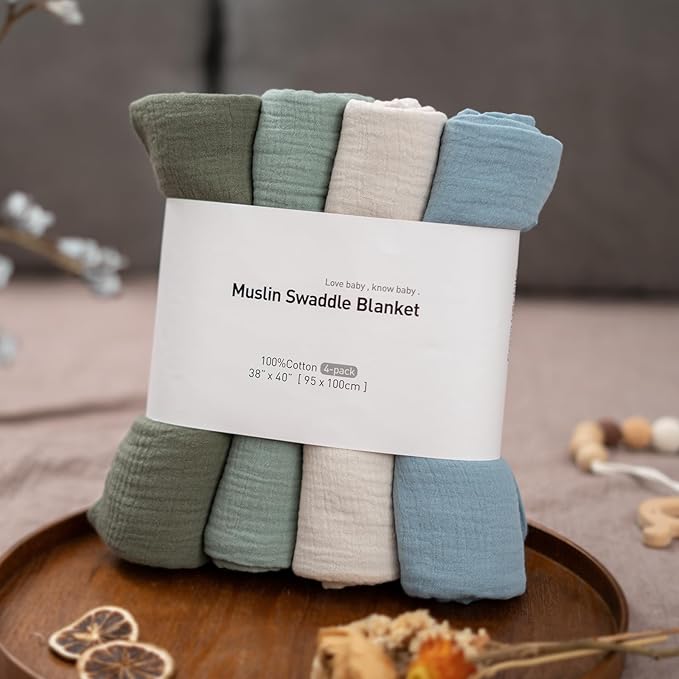 GLLQUEN BABY Muslin Swaddle Blankets for Boys and Girls, 4-Pack Baby Blankets for Girl Boy, Newborn Receiving Blanket, Baby Swaddle Blanket Unisex, Baby Essentials, Registry & Gift, 40 x 38 inches