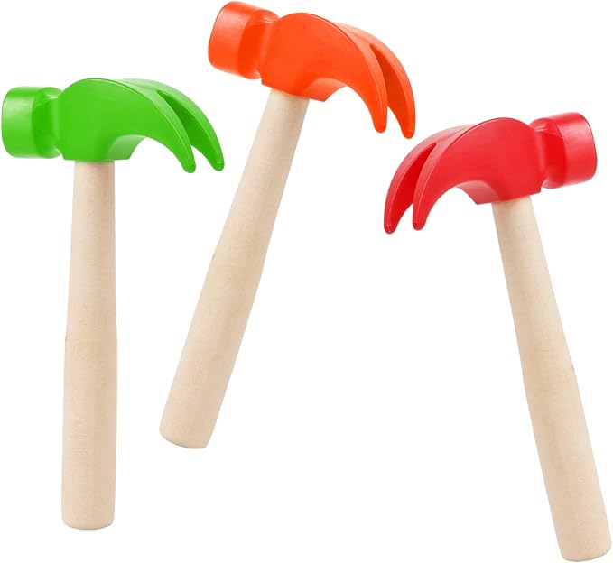Fowecelt 3 Pack Wooden Hammer Toys Simulation Hammers Maintenance Tools Educational Toys for Kids Birthday Party Games Supplies