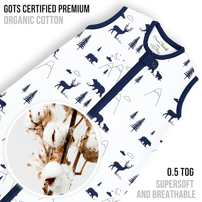 Mama Cheetah Baby Sleep Sack 0.5 TOG, Organic Cotton Baby Wearable Blanket with Two-Way Zipper, Swaddle Transition Baby Sleeping Bag for Newborn Infant Toddler Boy Girl, 0-6 Months