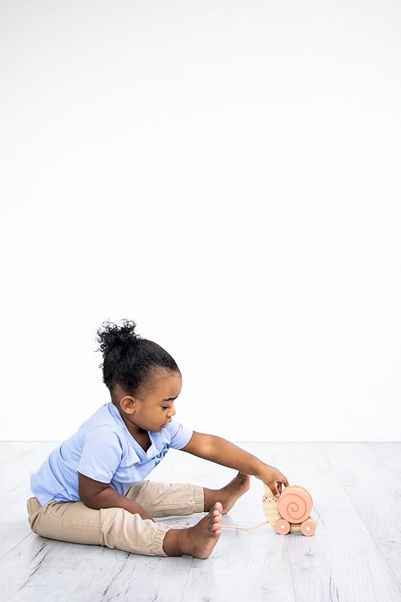 - Created to Spark Curiosity: Pearhead’s Wooden Walk A Long Snail toddler toy is crafted to engage young minds, encouraging learning and faster development during playtime. With a detachable wooden rattle snail shell filled with colorful wooden balls, this pull string toy encourages exploration and sensory play.