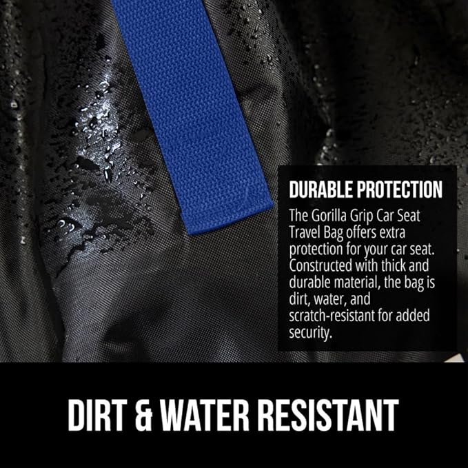 - DURABLE PROTECTION FOR YOUR CAR SEAT: a must for traveling, the Gorilla Grip Car Seat Travel Bag is designed to help protect your car seat while you travel; bag is water, tear and dirt resistant; features drawstring closure that tightly closes around the car seat, helping to protect from dirt, grime and moisture; bag is made of lightweight, yet durable material that can be machine washed