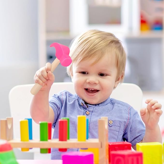 - Educational Toys: Perfectly designed for small hands to grasp and touch, these toy hammers will improve your babys grabbing ability, hand eye coordination ability, manipulation, promotes dexterity, arm movement.