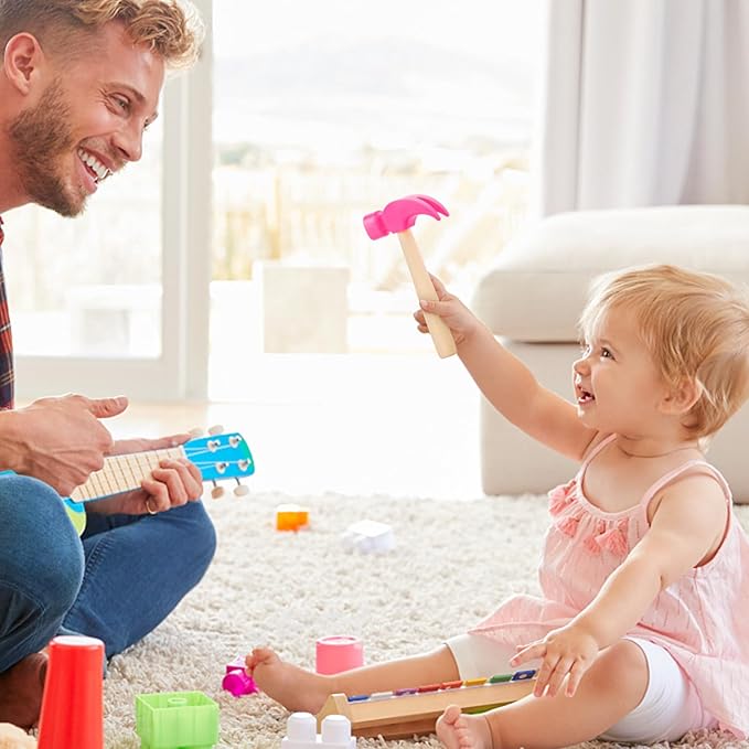 Fowecelt Wooden Hammer Toys Simulation Hammers Maintenance Tools Educational Toys for Kids Birthday Party Games Supplies (Pink)