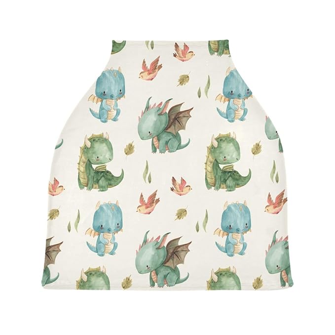 Kigai Cute Dragon Baby Car Seat Covers for Newborn, Breathable Nursing Cover for Breastfeeding Moms, Baby Stroller/Shopping Cart/Stretchy Carseat Cover for Boy & Girl
