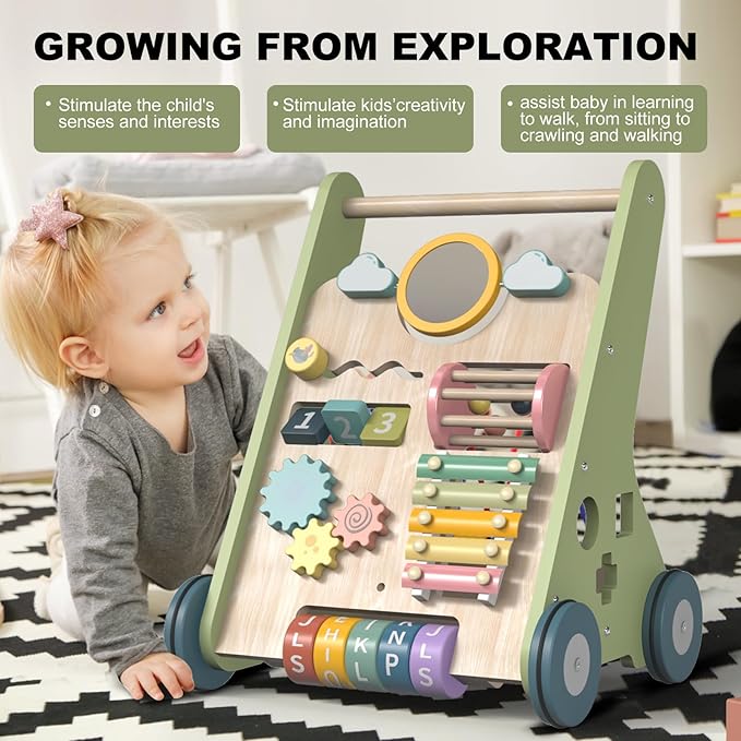 - 🌟【Develops Key Early Skills】Beyond a baby walker toy, this wooden activity walker cultivates creativity and problem-solving. As a push baby walker and pull learning walker, it enhances coordination for ages 6-12 months. The wooden push walker’s multi-sensory features foster cognitive growth – a true montessori walker.