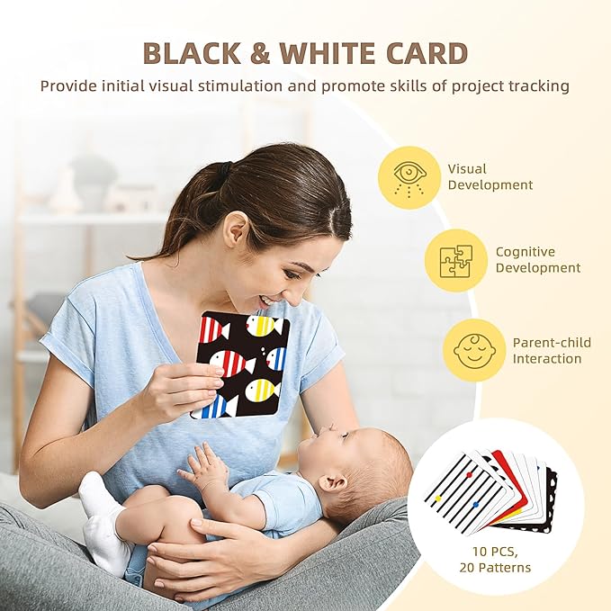 - STIMULATING TOUCH, VISUAL AND AUDITORY:The Colorful Fabric Ball features 8 tactile materials—soft, crinkly, and smooth—to enhance sensory development. High Contrast Baby Cards promote memory and right brain growth. The Wooden Baby Tissue Box Toy encourages fine motor skills through visual colors and crawling sounds.