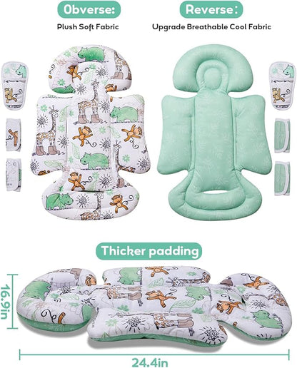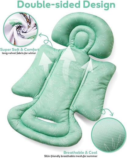 - Revesible for All Seasons: A double-sided infant car seat insert newborn. One side is made of plush fabric for super softness, the other side is made of breathable cool Wicking mesh fabric, keeping your baby cozy and cool in the carseat or swing all year round. Pick one side according to the season