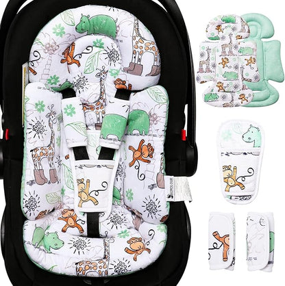 Infant Car Seat Insert, Enlarged Head Support for Baby Carseat, Reversible Newborn Insert with 3 Strap Covers, 2-in-1 Baby Car Seat Cushion for Stroller, Swing, Bouncer, Rocker - Blue Giraffe