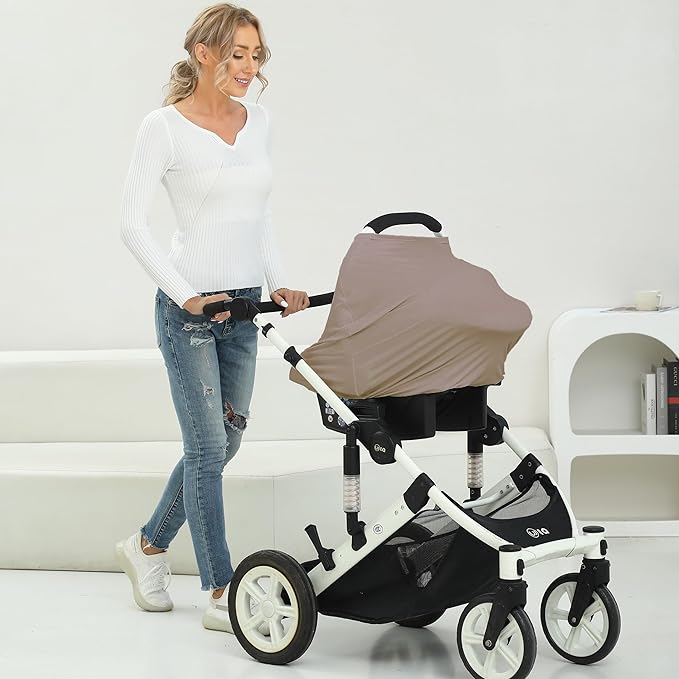 Breathable Car Seat Cover for Babies – Multi-Purpose Soft Rayon Nursing Cover for Breastfeeding, High Stretchy Infant Carseat Canopy, Stroller Cover (Smooth Rayon, Mocha Natural)
