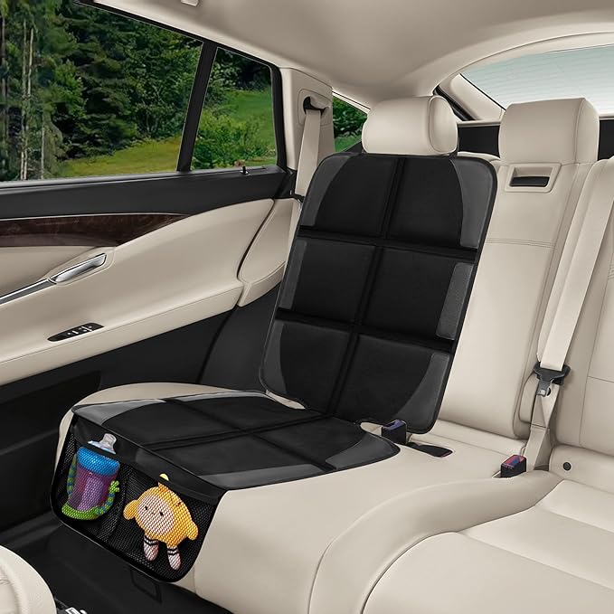 - Car seat protector covers for baby carseat made of waterproof durable 600D polyester with thick padding. Baby car seat cover can protects the back seat of the car from wear and tear of the child seat, make us comfortable while traveling