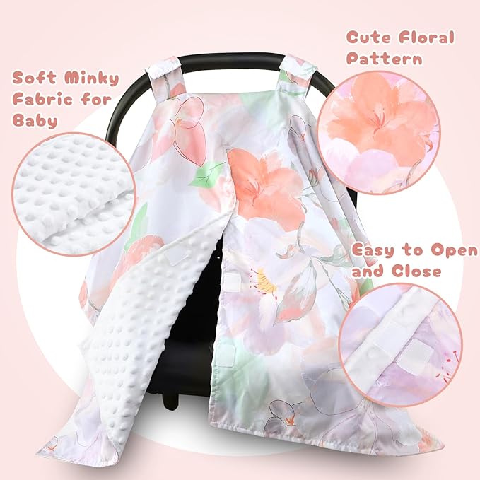 - SOFT AND BREATHABLE: Made of cotton, mink and microfiber polyester. The fabric of this car seat cover baby for boys and girls is very soft and breathable, skin friendly, providing your baby with a comfortable traveling experience