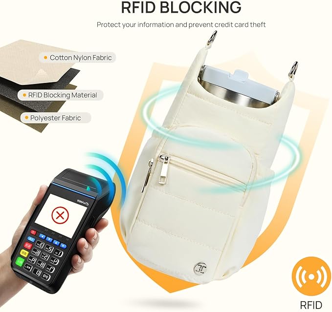 - Telena Water Bottle Bag: Made of high quality down fabric with adjustable vintage shoulder straps makes this water bottle holder classic yet stylish. The soft and waterproof down filled cotton material has better water and shock resistance while maintaining high softness and elasticity. Not only to prevent the water cup bump, but also wear light. Please note that this crossbody bag cannot be washed or machine washed